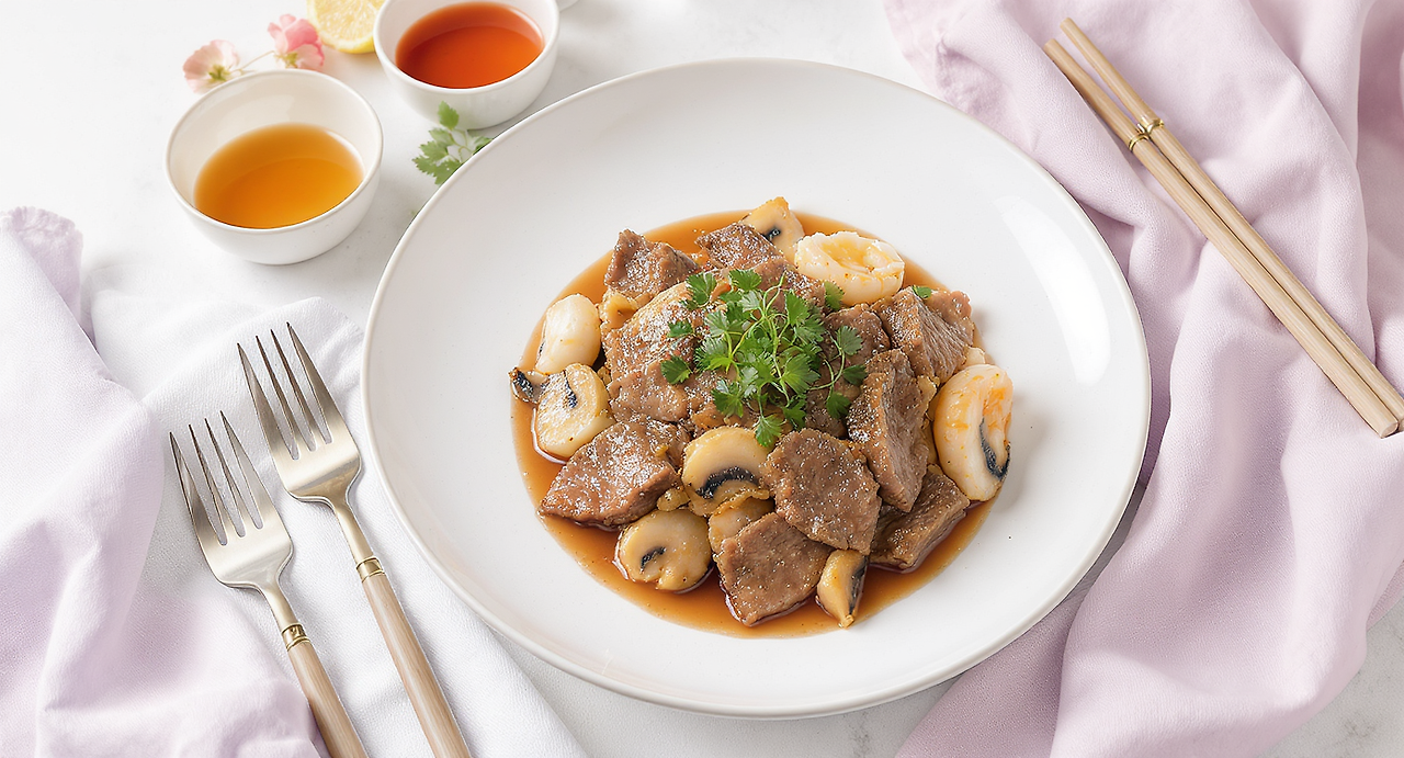 장흥의 대표 음식인 한우, 키조개, 표고버섯을 함께 먹는 특별한 조합으로, 축제장 주변 맛집에서 맛볼 수 있습니다.